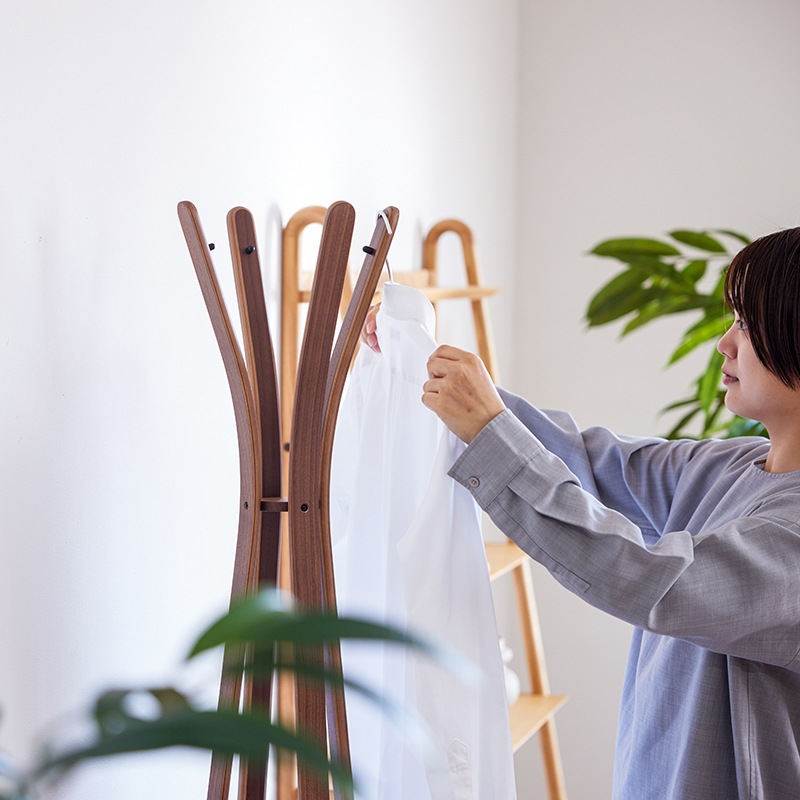 滑らかな曲線が連続したフォルムは、衣類を掛けていない状態でもオブジェとして美しく、美観と実用を兼ねた製品です。-