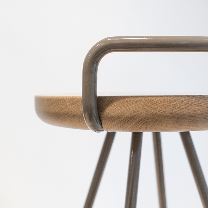 BAR STOOLは細く繊細な脚部と重厚な座板の対比に特徴のあるバースツールです。キッチンのバーカウンターや飲食店のハイカウンターでの使用に適しています。-