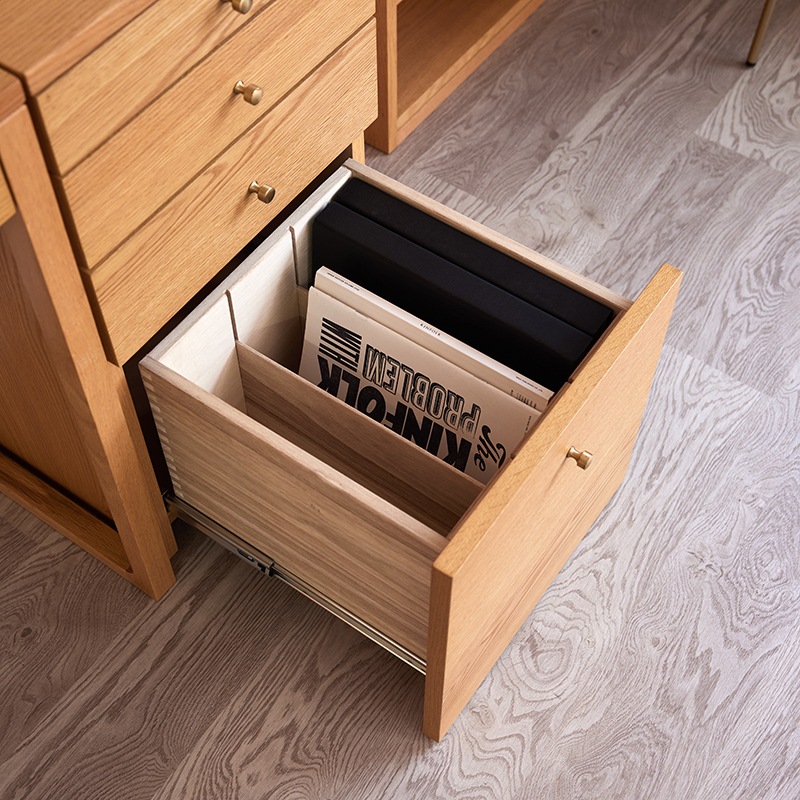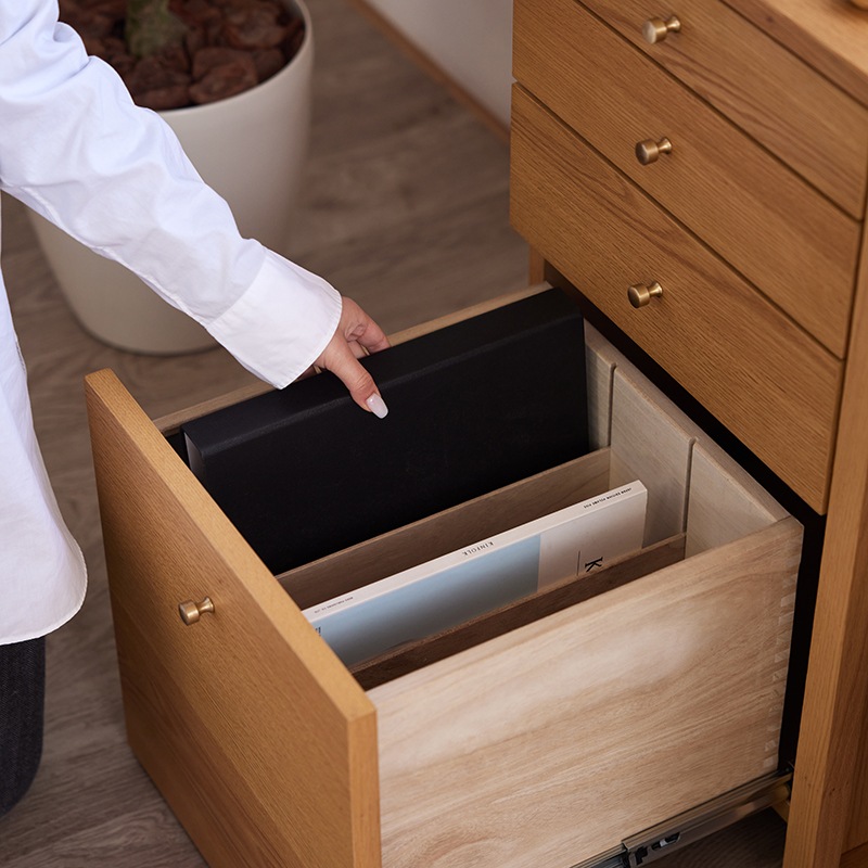 最下部の引き出しには、A4サイズのファイルを収納することができます。-